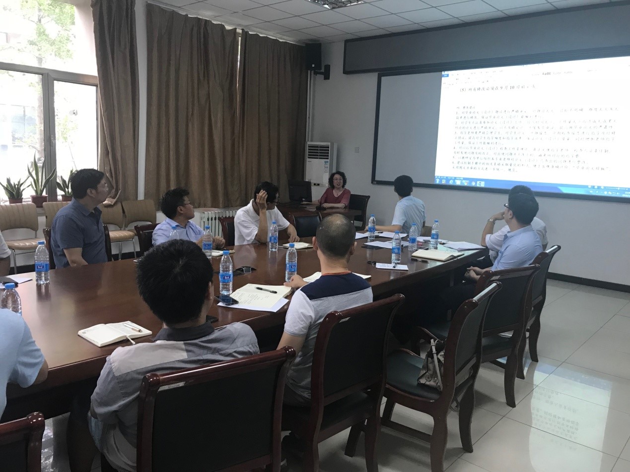 姜纪沂院长还向大家传达了教师发展中心以及学院迎评办公室的相关文件及工作安排。最后姜院长做了总结发言,从以下几个方面对学院下一步的工作提出要求:(1)全体教师及相关岗位的工作人员要切实做好学期末、暑期及下学期的各项工作,保障下学期教学工作顺利开展。(2)学院教师要有大局意识,理解并配合学校完成办公室搬迁方案。(3)教师暑期野外实习或外出工作要做好安排,安全第一,质量至上。(4)部署的毕业论文整改工作务必在8月20日前整改到位。(5)全体教师要积极关注学院推进的各项改革、教学科研及本科教学审核评估工作。(6)全体教师要不忘初心,牢记使命,立德树人,以人才培养为中心,不断提升教学水平、提高人才培养质量,推进学院建设和发展。(撰稿:李静 摄影:贾建鹏)