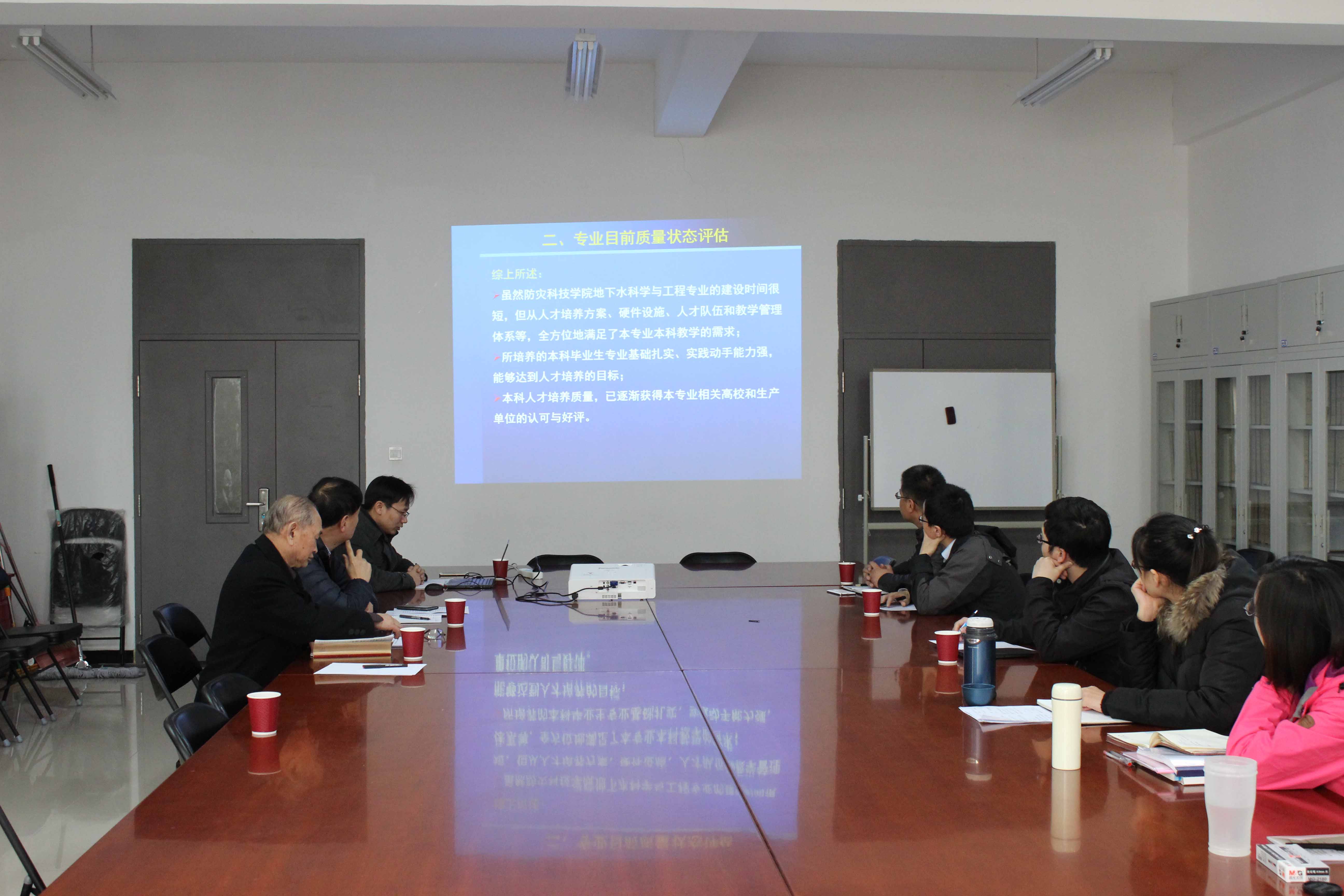 25日下午,在地科系会议室,专家组对地下水科学与工程专业建设质量评估及提升方案进行总结汇报,充分肯定了近年来该专业建设所取得的成绩。虽然防灾科技学院地下水科学与工程专业的建设时间很短,但从人才培养方案、硬件设施、人才队伍和教学管理体系等,全方位地满足了本专业本科教学的需求;所培养的本科毕业生专业基础扎实、实践动手能力强,能够达到人才培养的目标;本科人才培养质量,已逐渐获得本专业相关高校和生产单位的认可与好评。同时,专家组也提出了存在的问题并给出质量提升建议,例如,课程设置应与人才培养目标和专业特色相适应;实验条件应与教学需求相配套,进一步加强师资队伍建设,提高毕业论文质量,建议大力开展课程建设并加强实践教学研究与管理。最后专家组与地下水科学与工程专业教师进行座谈,针对具体专业课程的问题进行交流,对具体课程提出建议。