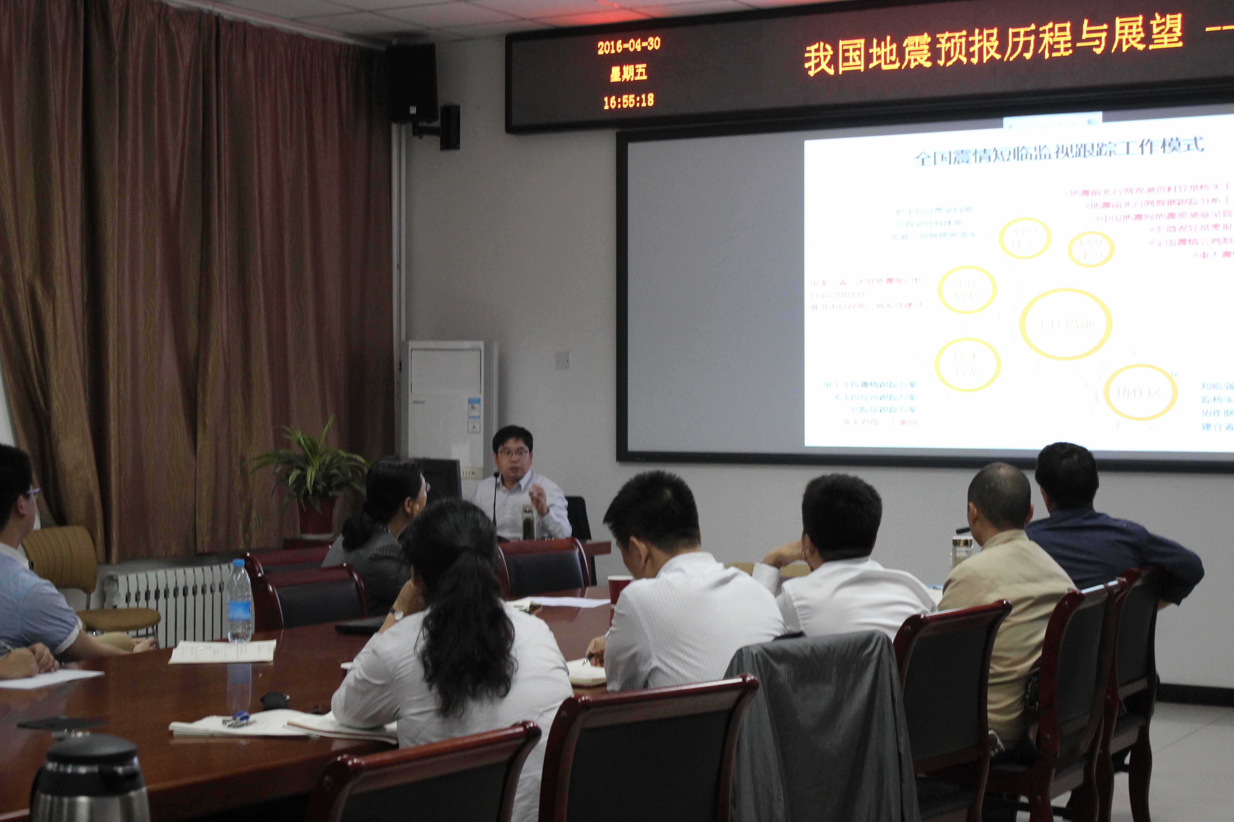 2016年04月29日下午,中国地震局监测预报司预报管理处处长马宏生副研究员应邀来pp电子做学术报告,报告由地震科学系李莹甄副研究员主持,地震科学系系主任沈军研究员、书记达勇、学科带头人万永革研究员等教师参加了学术报告,以及部分地球物理专业学生参加了报告会。
