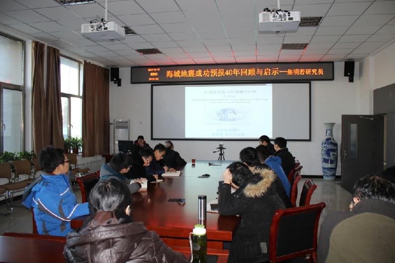1月7日,辽宁省地震局预报中心主任焦明若研究员应邀来pp电子作学术报告,万永革研究员主持报告会,地震科学系部分教师和研究生参加了报告会。