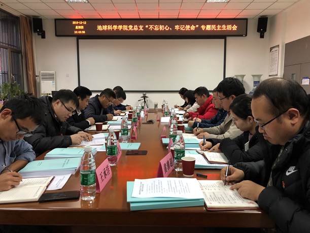 12月12日下午,地球科学学院党总支召开了“不忘初心、牢记使命”专题民主生活会,学校党委书记齐福荣出席会议并指导点评,会议由地球科学学院党总支书记唐圣华主持,学院领导班子成员和党总支委员参加会议,学术分委员会主任、教学督导组组长、教研室主任、党支部书记和办公室主任列席会议。