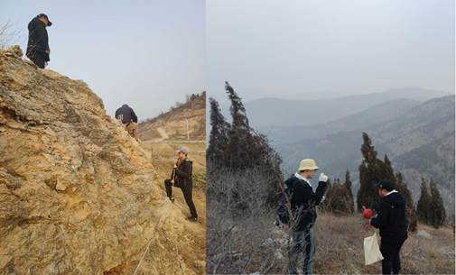 图1野外地质调查(左:地质调查、右:剖面实测)
