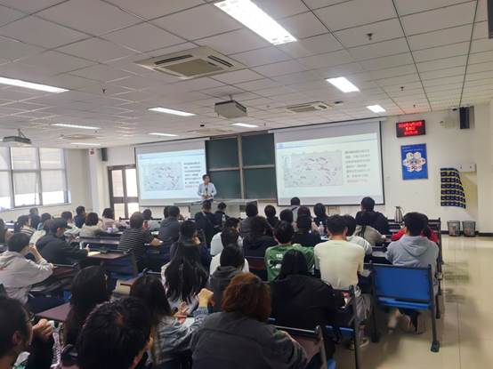 张会平首先为大家介绍了地震研究的重要意义和价值,并结合自身的研究成果介绍青藏高原对我国境内7.0级以上地震的动力作用。报告采取震例剖析的方式,从地表破裂、块体断裂分析和发震深部构造三个方面深入浅出的分析了2021年5月22日青海玛多7.4级地震的成因及物理机制。报告会现场气氛热烈,与会师生就玛多剖面深部电性结构三维电磁成像、造山运动、考研考博、基金撰写申请等问题与张会平研究员进行了深入的交流与探讨。