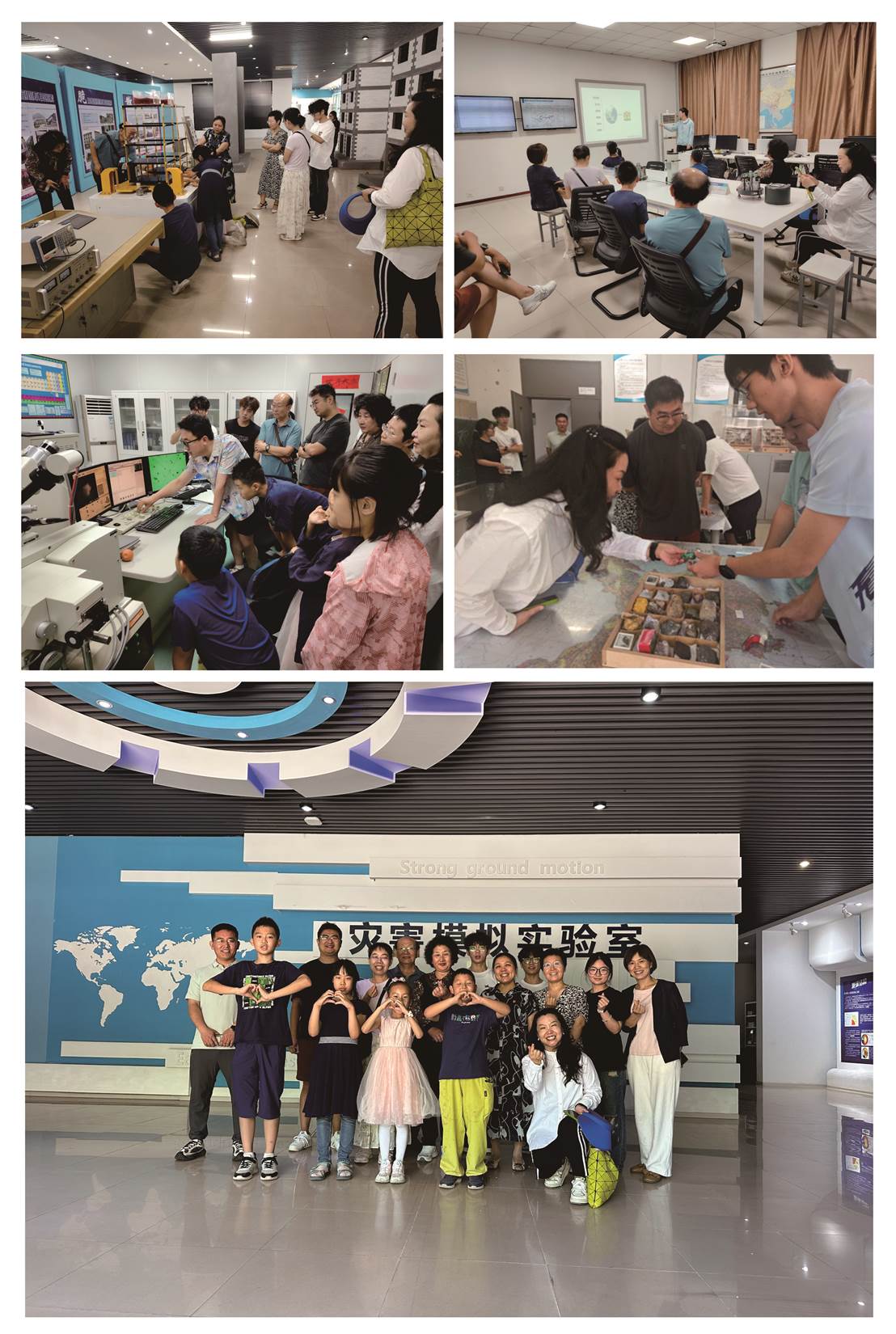 在pp电子官方网站教师和学生党员引导下,盟员和家属依次参观了遥测台网中心、电子探针实验室、矿物和岩石实验室、晶体光学实验室、以及灾害模拟实验室,通过近距离观察岩矿标本、动手操作精密仪器、近距离观察房屋抗震模拟实验,深入了解地球科学前沿技术及防灾减灾的实际应用。