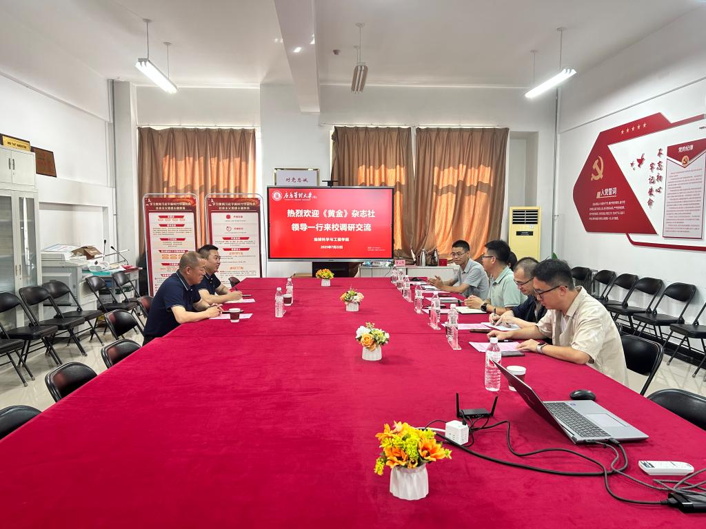 7月22日下午,《黄金》杂志社社长张继武、主任王学阳一行到pp电子调研交流。地球科学与工程学院副院长孙珍军热情接待并召开座谈会,pp电子官方网站、矿山安全学院部分骨干教师参加了座谈。