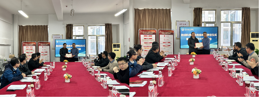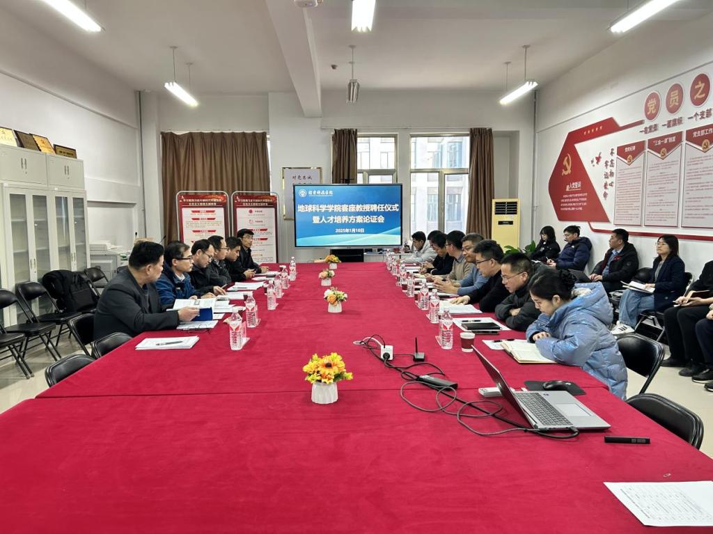 1月10日,地球科学学院召开客座教授聘任仪式暨人才培养方案论证会议。会议邀请桂林理工大学白令安教授、中国地震局地球物理研究所常利军研究员、西北大学刘燊教授、中国冶金地质总局一局潘北斗正高级工程师、北京九鼎图业科技有限公司吴杰董事长、中国地质大学(北京)邱昆峰教授和杨涛教授、自然资源部实物地质资料中心张森正高级工程师等专家学者参加会议。学校联合党委常委姜纪沂出席会议,教务处处长周振海参加会议,会议由地球科学学院副院长孙珍军主持。