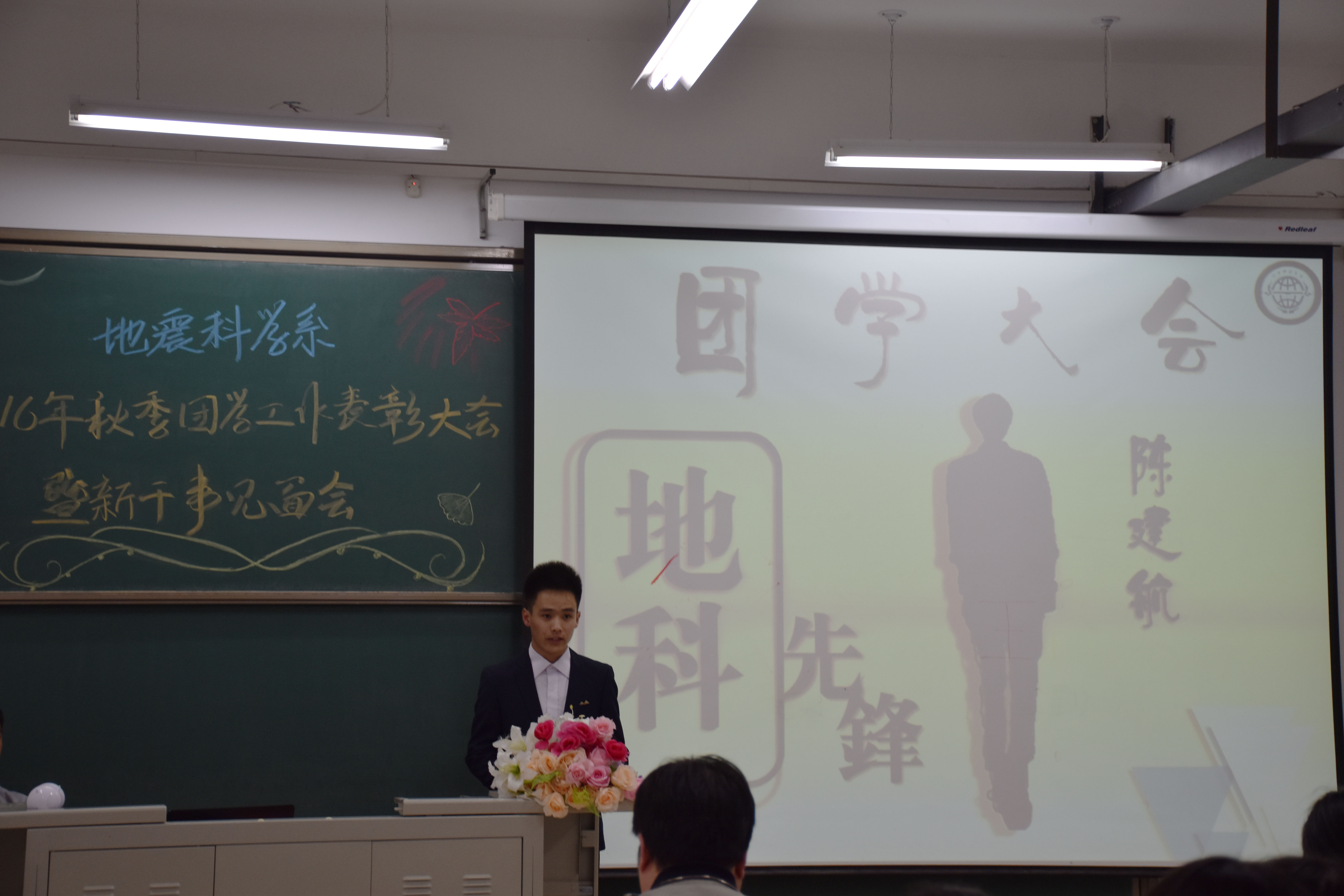 10月13日下午,我系在北校实验楼306教室举行2016年秋季团学工作表彰大会暨新干事见面会。参加此次大会的有系团总支书记唐圣华老师,辅导员牛永君、秦海啸、张玉琛、王鹤、牛晓龙老师,系团总支学生会全体成员、各班学生代表参加了大会。