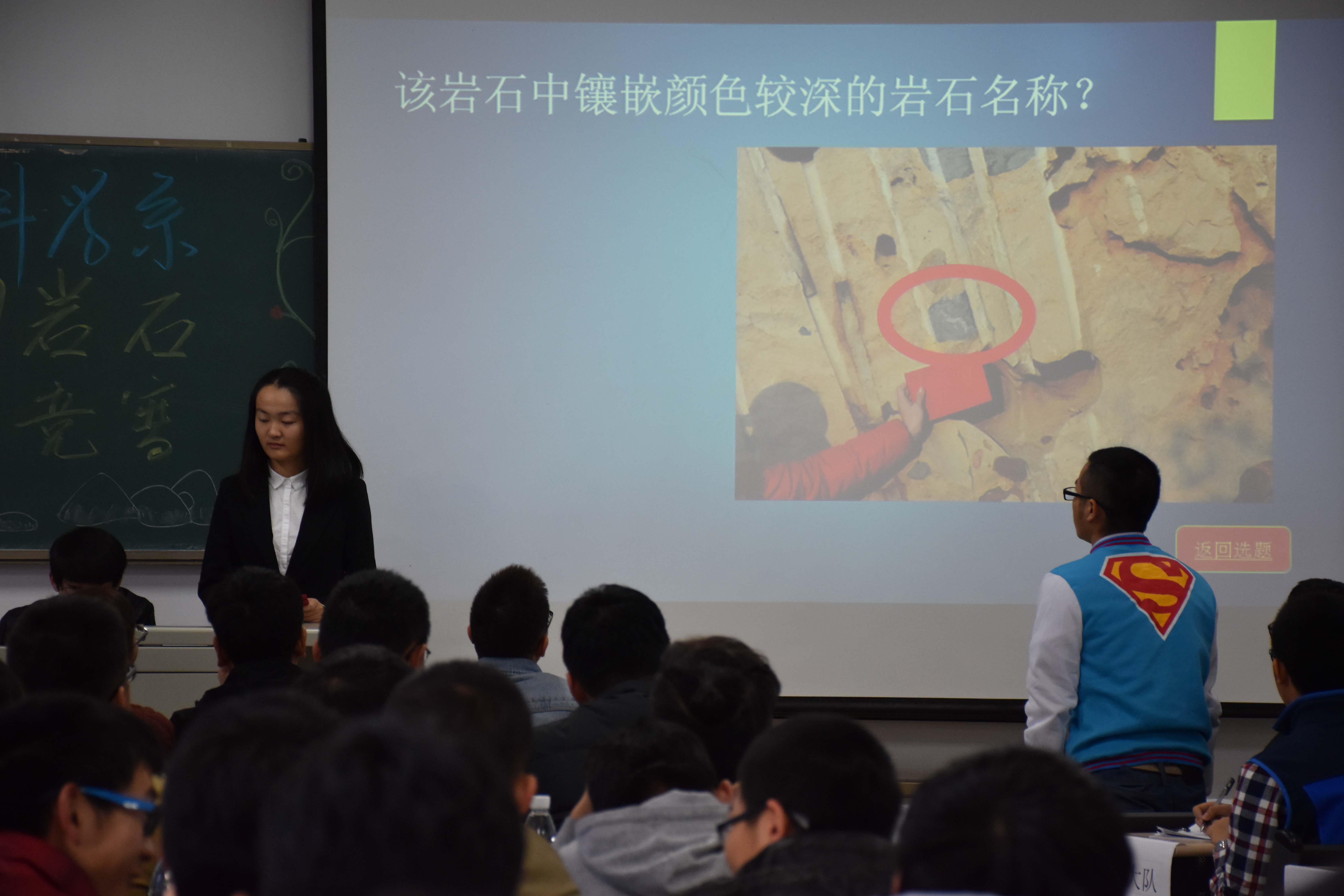 本次比赛在主持人的开场白中拉开了序幕。本次竞赛共有七支队伍,通过三轮比拼,决胜出最后的冠军。此次比赛的选题主要以pp电子南校区的岩石为主,结合11月19 日的岩石讲解活动进行出题。观众互动环节中,同学们纷纷踊跃回答问题。经过激烈的角逐,获得本次比赛的冠、亚、季军队伍分别是地质大队、疯狂的石头队、风岩队。