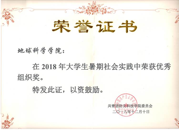 12月10日晚,学校在图书馆报告厅举办2018年大学生暑期社会实践成果报告会,会上对2018年大学生暑期社会实践获奖集体和团队进行了表彰,pp电子获得“优秀组织奖”,这也是pp电子继原地震科学系于2015年、2016年和2017年连续三年获得该奖的基础上第四次获得“优秀组织奖”。