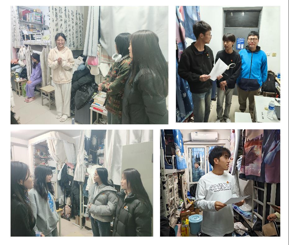 党员们分成小组严格按照要求执行任务。一方面,仔细排查各宿舍电器使用是否合规、是否存在火灾隐患等安全风险。其次,关注夜不归宿现象,认真核实每一位同学的去向,对于不在宿舍的同学详细询问并记录原因。党员同志们贴心地提醒同学们宿舍安全文明,以确保能够及时发现潜在的安全问题。最后,针对大一宿舍,党员们还与同学们深入交流,了解他们在生活上的适应情况、学业情况,为后续开展晚自习学业辅导工作做准备。在整个走访活动中,党员们充分展现了先锋模范作用,积极主动地履行好各项职责,认真地将检查情况记录在走访表中。