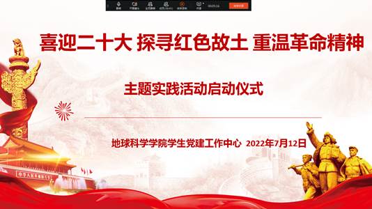 为弘扬伟大建党精神,以实际行动迎接党的二十大胜利召开,7月12日上午,地球科学学院学生第一党支部和学生第二党支部联合开展2022年暑期“喜迎二十大 探寻红色故土 重温革命精神”主题实践活动启动仪式,学院党总支书记唐圣华同志、学生第一党支部书记黄骥超同志、学生第二党支部书记王鹤同志和全体学生党员通过钉钉视频线上参会。仪式由学生第二党支部副书记王晨霏同志主持,会上王鹤同志首先介绍了今年暑期党员主题实践活动的背景意义、实践内容以及注意事项等相关事宜,随后学生第一党支部副书记孟兴元同志作为学生党员代表宣读了《2022年地球科学学院学生党员暑期主题实践安全协议书》。
