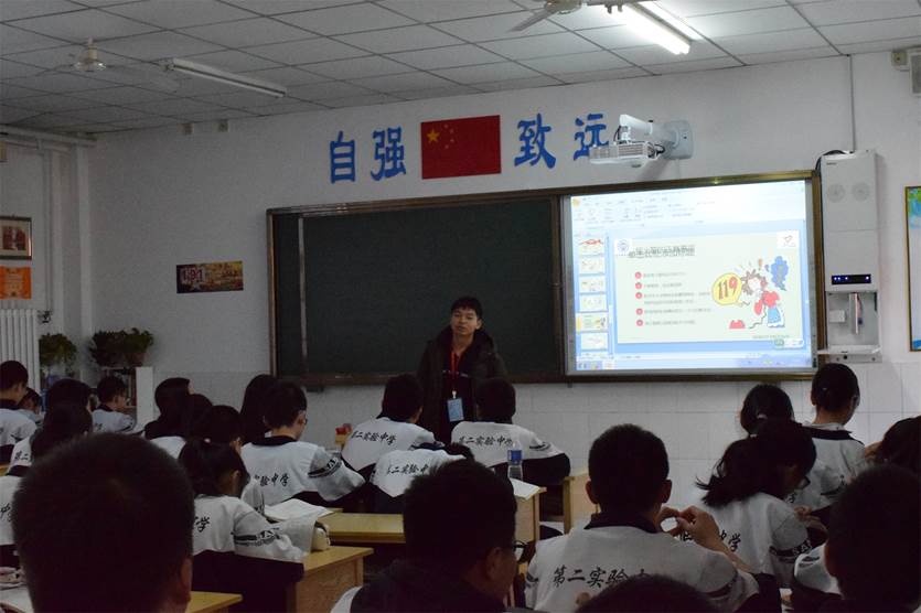 12月13日,地球科学学院组织60多名青年志愿者来到三河市第二实验中学成功开展消防疏散演练活动。