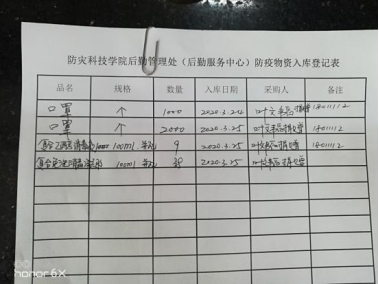 众志成城,共同“抗疫”,在新冠肺炎疫情防控阻击战中,学校的疫情防控工作时刻牵动着防灾学子的心。得知学校教职工即将有序返岗,地球科学学院180111班叶文韬同学主动联系老师表示要向学校捐赠口罩等抗疫物资。叶文韬拿出自己的国家奖学金和平时积攒的零花钱共计一万余元,在父母的支持和帮助下,多方联系货源,分别从江西南昌、都昌等地筹集了3000个防护口罩、9瓶乙醇消毒液和38瓶消毒凝胶,通过快递的方式全部捐赠给学校。叶文韬同学的爱心行动不仅为学校疫情防控工作提供了有力的物质支持,也将温暖的爱心和强大的信心播种在了学校师生的心田。