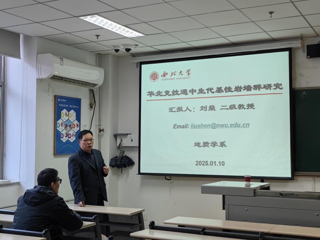 2025年1月10日上午,西北大学刘燊教授和桂林理工大学白令安教授应河北省地震动力学重点实验室、地球科学学院的邀请,分别为学校师生做了题为“华北克拉通中生代基性岩墙群研究”和“推进课程思政、践行立德树人”的学术报告,地球科学学院部分师生参加了学术报告会,学术报告由地球科学学院副院长孙珍军教授主持。