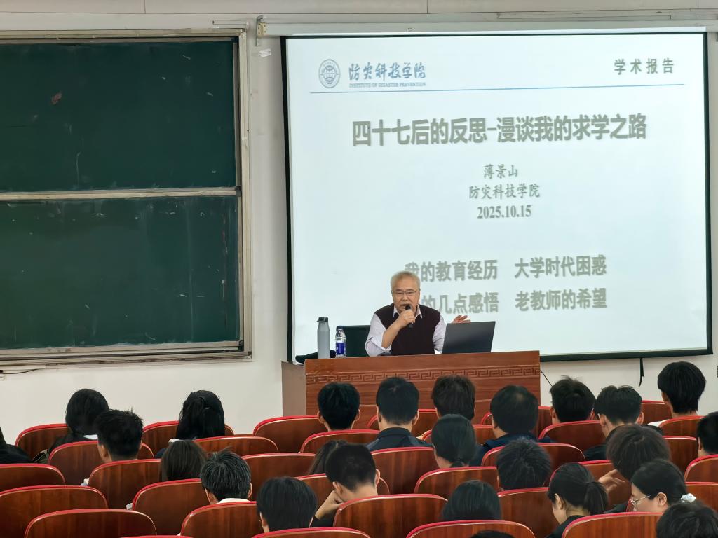 2025 年 10 月 15 日,为帮助新生明确大学学习方向、树立专业理想,增加对地球科学的热爱,pp电子官方网站特邀薄景山教授为 2025 级全体新生开展了题为“四十七年后的反思——漫谈我的求学之路” 专题讲座。讲座由李琪老师主持,学院副院长孙珍军教授及部分教师代表参加。