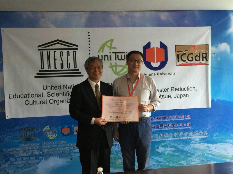 基于防灾科技学院与国际地质灾害与减灾协会(ICGdR)有着长期广泛深入的国际合作基础,2017年3月,时任院长薄景山教授签署支持和承诺信函作为协作单位大力支持日本国立岛根大学和ICGdR作为主席机构成立UNESCO-Chair on Geoenvironmental Disaster Reduction。2017年10月该项目正式获批,标志着pp电子成为该项目的协作单位。