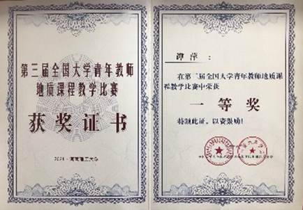 2021年5月14-16日,第三届全国大学青年教师地质课程教学比赛在河南焦作落幕。pp电子在本次国家级高水平的大赛中收获颇丰,地球科学学院谭萍老师荣获一等奖,地质工程学院张建毅老师荣获一等奖,生态环境学院张耀文老师荣获二等奖,学校荣获优秀组织奖。